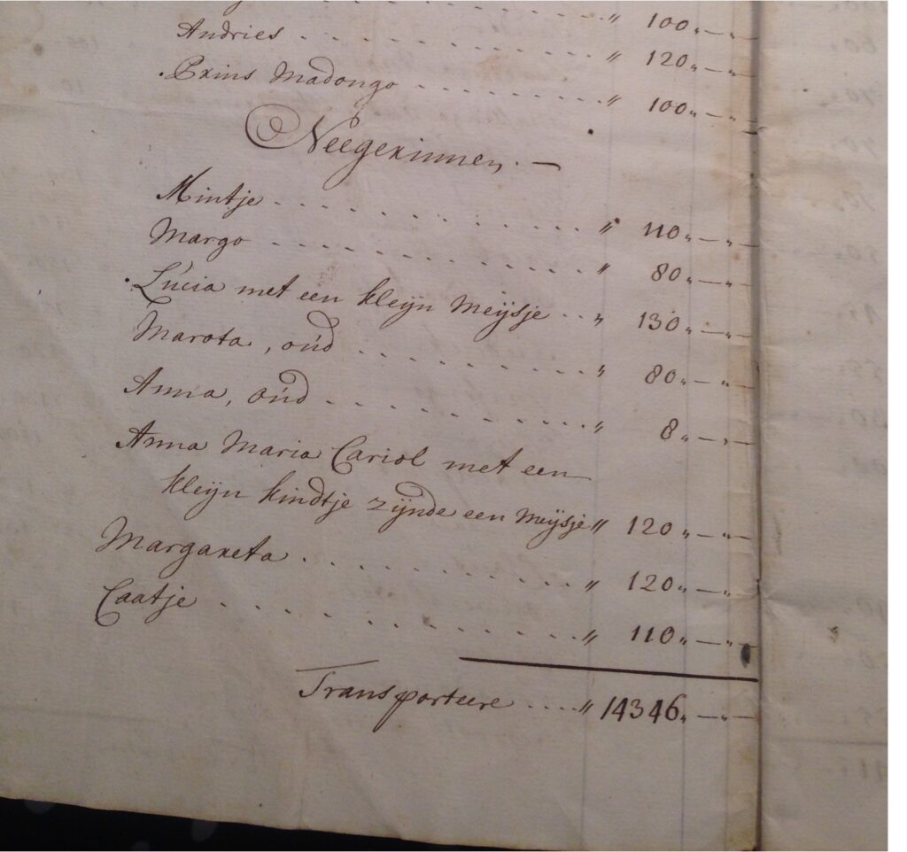 It was most likely during this traumatic period that Damma was given the name Marotta. Enslaved people were commonly assigned new names by those who enslaved them. We can presume that “Marotta” was Damma’s “slave name” because the Dutch Creole version of her letter is signed “Marotta, now Madlena.” In the church registers, “Marotta” is listed as Damma’s name before her baptism. The fact that she signed the Gbe-language version of her letter with the name “Damma,” meanwhile, suggests that this was a name that she associated with her place of origin.
