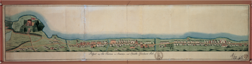 Charlotte Amalie, also known as Tappus. Detail of “Prospect von Sct. Thomas in America, und Citadelle Christians Fort.”
