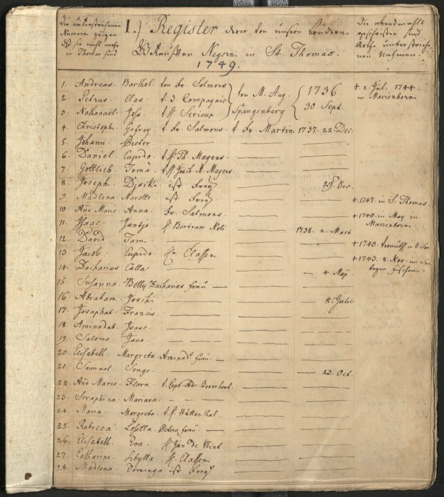 Djacki, like Damma, was listed in the church registers of the Moravian church, and both the registers and Oldendorp described him as being from the “Popo” nation. Damma and Djacki may have spoken Gbe in their home and maintained traditions and customs of their homeland. We do not know how Damma and Djacki earned their living, but the few free Afro-Caribbeans living in St. Thomas tended to work as vendors, fishermen, or craftsmen.