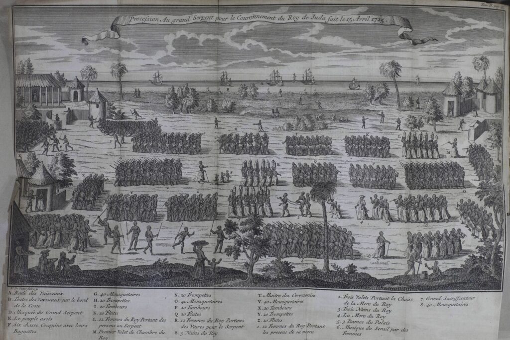 Procession at the Temple of Dangbe, Whydah. Printed in Voyage du chevalier Des Marchais en Guinée (1731), vol. 4. Courtesy of the Library Company of Philadelphia.